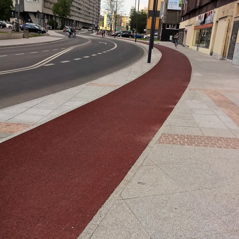 • Asfaltowa droga rowerowa zabarwiona na czerwono pigmentem IRONMAX 130